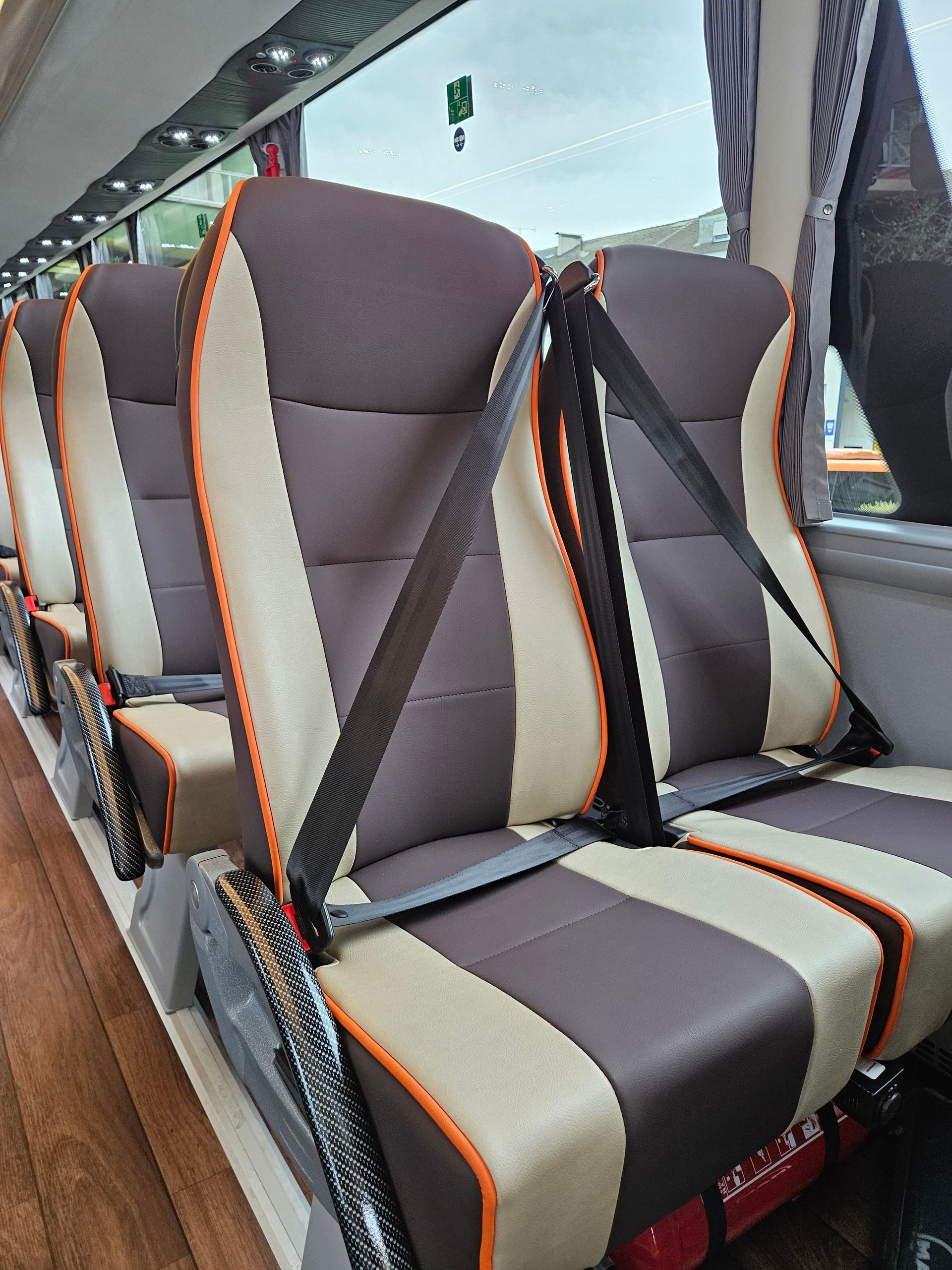 Todos nuestros vehículos están equipados con asientos reclinables, monitores de televisión, aire acondicionado; todo especialmente diseñado para viajes largos con la mayor comodidad.